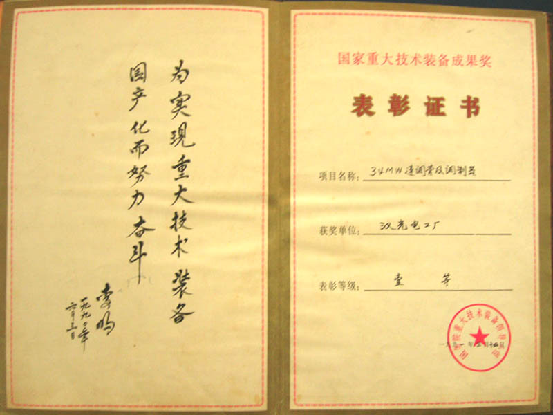 電氣產(chǎn)品3C認證證書 湖北省第17屆優(yōu)秀企業(yè)證書 北京電子對撞機改造工程獎牌